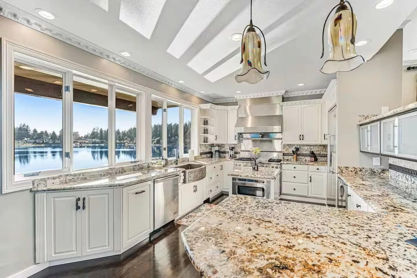 Inside, the house is warm and inviting, with beautiful, light-filled spaces to gather, rest, or slip away with a book. Outside, multiple balconies and patios open to sweeping lake views — the kind that instantly slow your breathing.