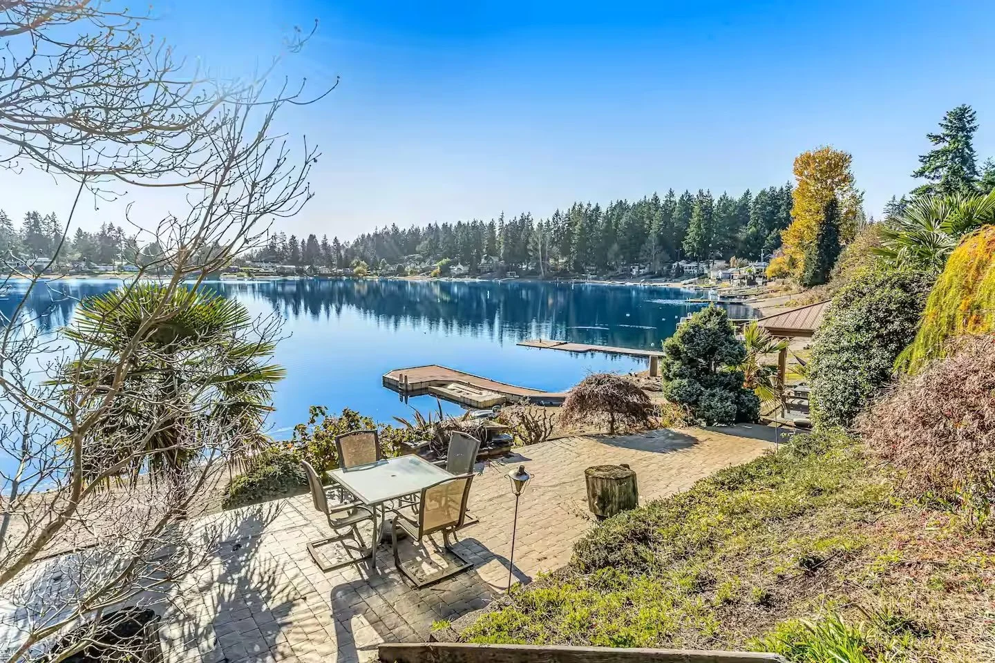 This lakefront home was chosen for comfort, beauty, and ease. Light-filled indoor spaces, sweeping balcony views, lake access with kayaks and paddleboards, hot tub soaks, fire tables under the sky — every detail supports both connection and quiet.